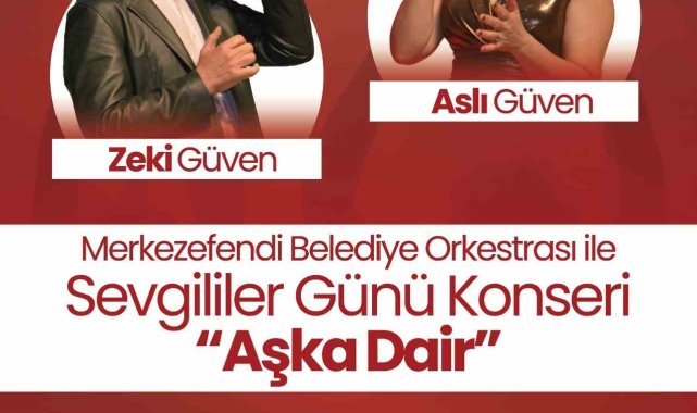 Merkezefendi Kültür Merkezi'nde 14 Şubat Cumartesi akşamı gerçekleşecek konserde Aslı Güven ve Zeki Güven, aşk temalı eserleri Merkezefendi Belediye Orkestrası eşliğinde seslendirecek. Merkezefendi Belediye Başkanı Şeniz Doğan, "Sevginin ve müziğin bir araya geleceği konserimizde tüm hemşerilerimizle buluşmaktan büyük mutluluk duyacağız" dedi.
