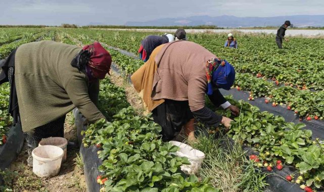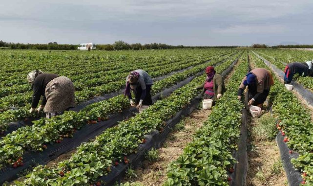 Mersin'de açıkta çilek hasadı başladı: İç pazarda kilogramı 65 ile 75 TL arasında