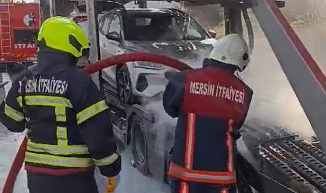 Mersin'de araç taşıma römorkunda yangın