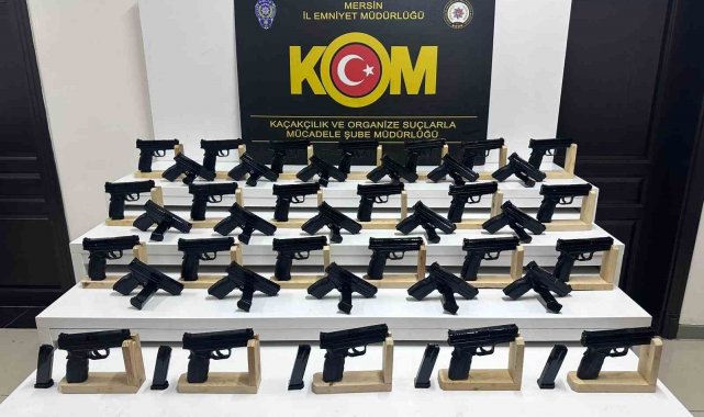 Mersin'de durdurulan araç içerisinde 40 adet kaçak tabanca ele geçirildi, gözaltına alınan 2 şüpheli tutuklandı.
