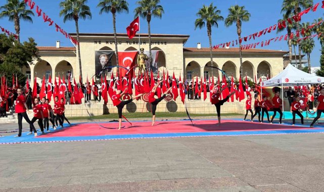 Mersin'de 29 Ekim Cumhuriyet Bayramı, minik öğrencilerin gösterileri, halk oyunları, tekvando ve jimnastik performanslarıyla coşkuyla kutlandı. Jandarma komandoların sergilediği gösteriler ve resmi geçit töreni kutlamalara renk kattı.