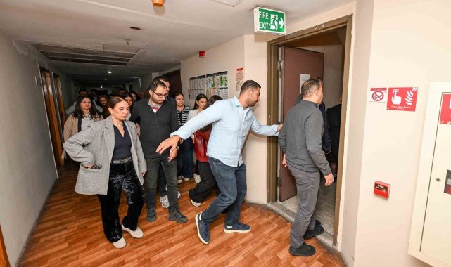 Mersin'de bir iş merkezinde düzenlenen yangın ve kurtarma tatbikatında personel kısa sürede tahliye edilirken, itfaiye ekipleri senaryoya uygun olarak farklı katlarda arama-kurtarma ve ilk müdahale işlemlerini başarıyla gerçekleştirdi.Mersin Büyükşehir Belediyesinin Metropol İş Merkezi'nde bulunan birimlerinde görev yapan personeline yönelik, 'Yangın ve Kurtarma Tatbikatı' gerçekleştirildi. Muhtemel acil durumlara karşı hazırlıklar kapsamında, tatbikat senaryosuna uygun hareket edildi. Tatbikat senaryosu gereği 4. katta uzatma kablosu kaynaklı çıkan başlangıç aşamasındaki yangın için alarm çalıştırıldı. Sorumlu personelin yönlendirmesiyle acil çıkış kapısı kullanılarak, personelin binadan tahliye işlemi yapıldı ve birim sorumluları personel yoklamasını gerçekleştirdi. Senaryo gereği binada mahsur kalan ve panik atak geçiren personel ise arama kurtarma ekiplerinin müdahalesiyle tahliye edildi. Aynı zamanda ilk müdahaleyi yapan sağlık ekipleri de tatbikatta yerini aldı. Her daim göreve hazır olduğu belirtilen Mersin Büyükşehir Belediyesi İtfaiye Teşkilatının, vatandaşların can ve mal güvenliğini sağlamak adına hızlı ve etkin müdahale anlayışını esas alarak, bilinçlendirme çalışmalarına da devam ettiği ifade edildi. Muhtemel acil durum senaryolarını başarılı tatbikatlar ile canlandıran itfaiye ekipleri, afet ve acil durumlara karşı belediye personelinin farkındalığını da artırıyor."2025 yılında toplam 424 tatbikatta, 55 bin kişinin binadan tahliyesini gerçekleştirdik"İtfaiye Dairesi Başkanlığı'nda Eğitim Çavuşu olarak görev yapan Oğuzhan Şimşek, tatbikatın başarıyla tamamlandığını belirterek, kurtarma işlemlerinin farklı katlarda gerçekleştirildiğini aktardı. İlk müdahalelere dair konuşan Şimşek, "26, 27 ve 28. kattan, itfaiye asansörü ile kurtarma yaptık. Senaryo gereği 4. katta mahsur kalan bir personelimizi, merdivenli aracımızla yan taraftan tahliye ettik. Yıl içerisinde İtfaiye Eğitim Şube Müdürlüğü olarak böyle tatbikatları hayata geçiriyoruz. 2025 yılında yaptığımız toplam 424 tatbikatta, 55 bin kişinin binadan tahliyesini gerçekleştirdik" dedi.Tatbikatların, farkındalığı da artırdığını dile getiren Şimşek, "Yaptığımız tatbikatlardaki asıl amacımız; personelimizin ve kurumlardaki vatandaşlarımızın, muhtemel bir yangın anında ne yapması gerektiğini anlatmak. Aynı zamanda, yangının önlenebilir olduğunu da vurgulamaya çalışıyoruz" diye konuştu.