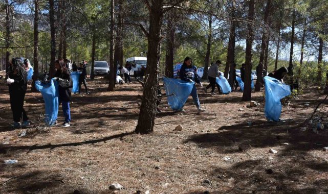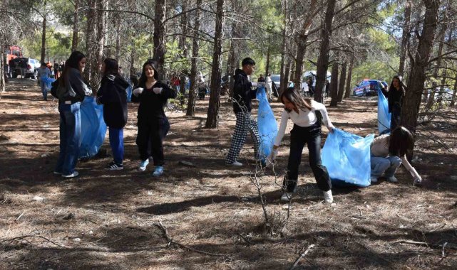 Gençlik ve Spor ile Tarım ve Orman Bakanlığı'nın 81 ilde eşzamanlı olarak düzenlediği "Ormanlar İçin El Ele Veriyoruz" etkinliği çerçevesinde, Mersin'in Mut ilçesinde öğrenciler Cumhuriyet Ormanında çevre temizliği yaptı.