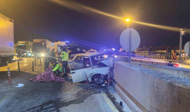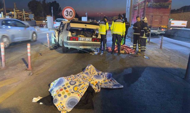 Mersin'de otoyolda bir otomobil, gişelerdeki beton bariyerlere çarptı. Kazada 2 kişi hayatını kaybederken, 4'ü çocuk 5 kişi yaralandı.