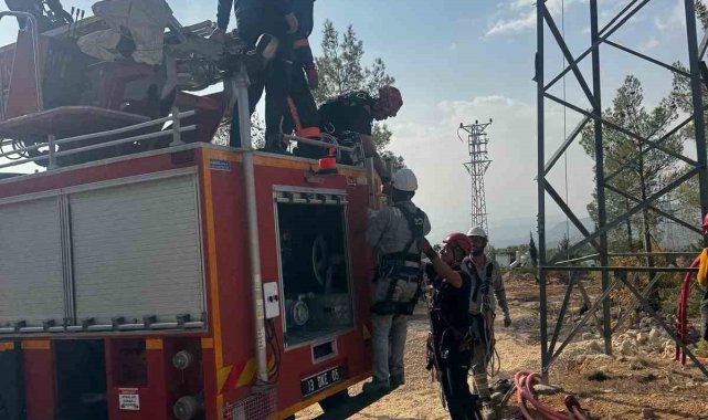 Mersin'de yüksek gerilim hattı çalışması sırasında 25 metre yükseklikteki direkte mahsur kalan bir işçi, itfaiyenin müdahalesiyle kurtarıldı.