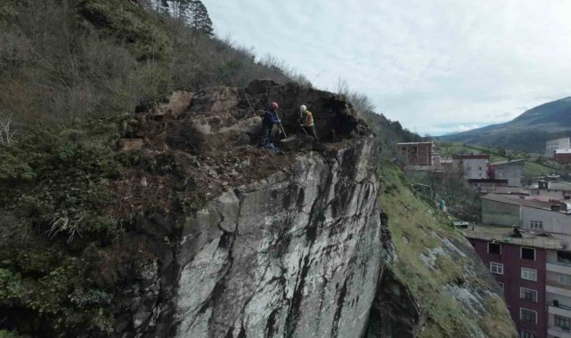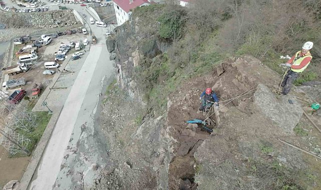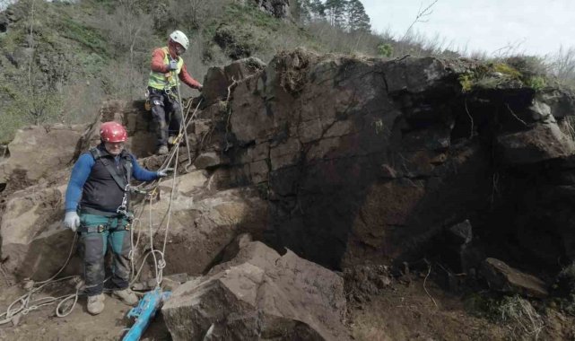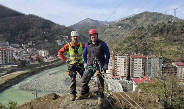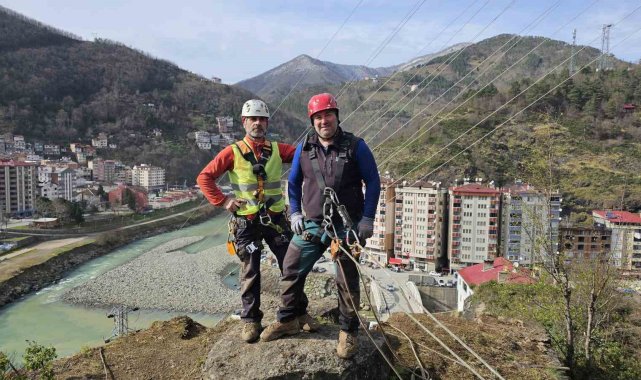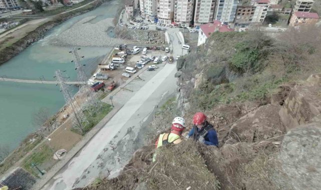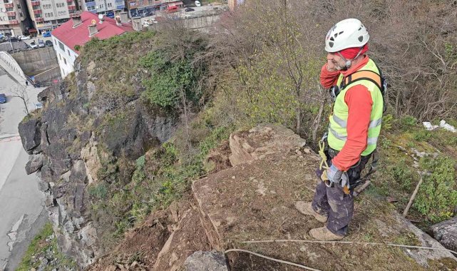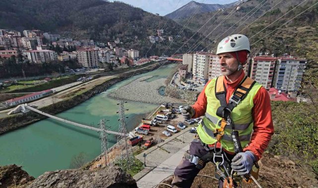 Endüstriyel dağcılar, yamaçlarda ve ulaşılması güç alanlarda çalışan, özel eğitim ve yüksek beceri gerektiren zorlu bir mesleği icra ediyor.Artvin'in Borçka ilçesine bağlı Aksu Mahallesi'nde yıllardır yol güvenliğini tehdit eden dev kaya kütleleri, profesyonel ekipler tarafından kontrollü bir çalışma ile düşürüldü. AFAD koordinesinde yürütülen çalışmalarda endüstriyel dağcılar metrelerce yüksekliğindeki yamaçlara ip sistemleriyle tırmanarak tehlike oluşturan kayalara ulaştı.Zorlu arazi şartlarında çalışan ekipler, kriko ve levye gibi özel ekipmanlar kullanarak tonlarca ağırlıktaki kaya parçalarını kontrollü şekilde bulunduğu yerden düşürdü. Çalışmalar sırasında yol ve çevrede herhangi bir risk oluşmaması için geniş güvenlik önlemleri alınırken, dev kayaların temizlenmesiyle bölgede ulaşım güvenliği sağlandı.Endüstriyel dağcı Soner Özçelik, yaptıkları işin ciddi tecrübe ve dikkat gerektirdiğini belirterek "Erişimi zor bölgelere ip kullanarak ulaşıyoruz. Orada gerekli iş çözümlerini gerçekleştiriyoruz. Burada da riskli bir alan vardı. Düşme tehlikesi bulunan taş ve kaya kütlelerini güvenli ve kontrollü bir şekilde düşürerek tehlikeyi ortadan kaldırıyoruz" dedi.Yamaçlarda metrelerce yükseklikte çalışan endüstriyel dağcılar, zorlu şartlara rağmen yaptıkları müdahalelerle hem yol güvenliğini sağlıyor hem de olası kazaların önüne geçiyor.