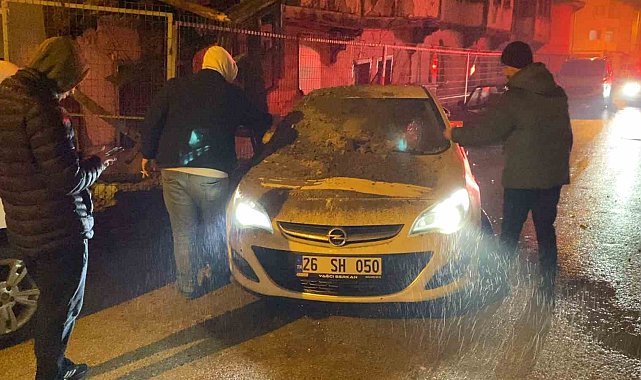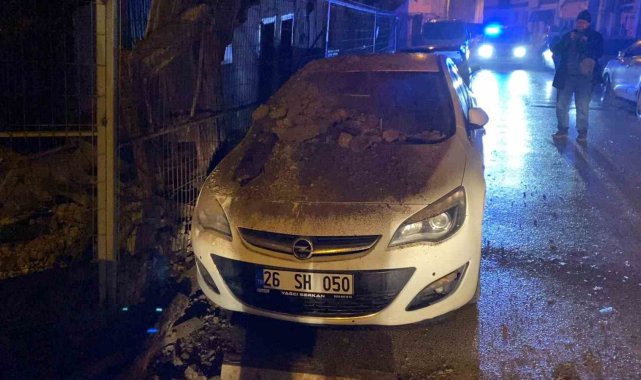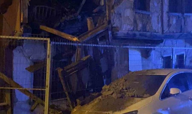 Metruk binanın bir kısmı otomobilin üzerine yıkıldı