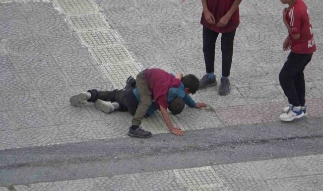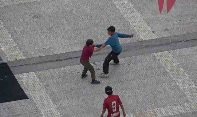 Samsun'da Cumhuriyet Meydanı'nda iki vatandaş arasında çıkan sözlü tartışma, kısa süreli kavgaya dönüştü.İlkadım ilçesi Cumhuriyet Meydanı'nda kimliği henüz öğrenilemeyen iki vatandaş, bilinmeyen bir nedenle sözlü olarak tartışmaya başladı. Tartışmanın büyümesiyle taraflardan biri diğerine tekme attı. Olay yerinde bulunan polis duruma hızlıca müdahale gederek tarafları ayırdı ve kavganın büyümesini önledi.Çocukça kavgaÇöp toplayan yabancı uyruklu çocuklar ise bilinmeyen bir nedenle tekme ve yumruklarla birbirlerine girdi. Yaklaşık 5 dakika boyunca birbirilerini yerlerde sürükleyen, yumruk atan ve tehlikeli hareketler yapan çocukları buradan geçen bir kadın ayırdı.