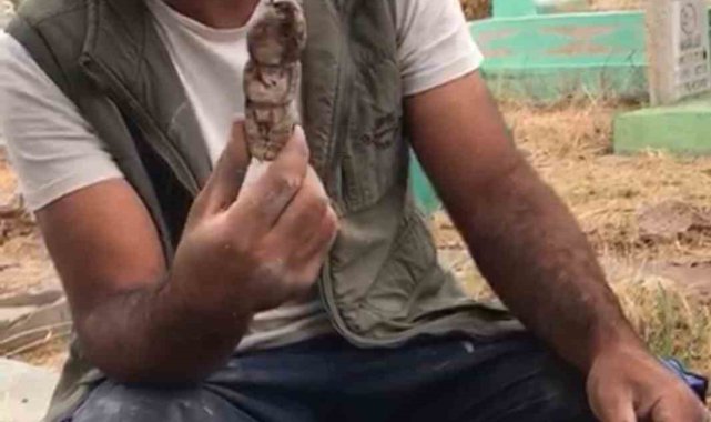 Diyarbakır'da mezar kazan bir kişi, toprakta kefenlenmiş bir oyuncak bebek buldu. Bunun büyü olduğunu düşündüğünü ifade eden şahıs, oyuncağın üzerindeki ipleri ve bezi kesip yaktı.