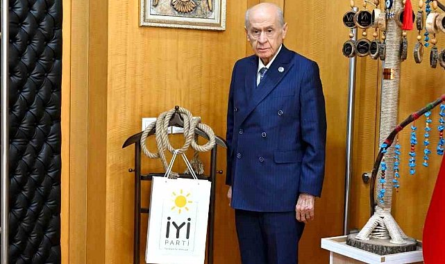 Milliyetçi Hareket Partisi(MHP) Genel Başkanı Devlet Bahçeli, İYİ Parti Genel Başkanı Müsavat Dervişoğlu'nun grup toplantısında kürsüden fırlattığı ipi odasına astıMHP'nin sosyal medya hesabından yapılan açıklamada, "İYİ Parti grup toplantısında Genel Başkanımız Devlet Bahçeli'ye makam odasına koyması gerekçesiyle atılan ipi aldık. Genel Başkanımız Devlet Bahçeli, ipi makam odasına astı" denildi.