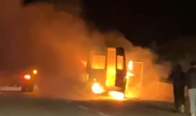 Muğla'nın Milas ilçesinde meydana gelen yangında pazardan dönen bir vatandaşa ait minibüs, Boğa Yokuşu mevkiinde seyir halindeyken henüz belirlenemeyen bir nedenle alev alarak küle döndü.Olay, saat 23.45 sıralarında meydana geldi. Edinilen bilgiye göre, pazardan evine dönmekte olan bir çiftçiye ait minibüsün motor kısmından dumanlar yükselmeye başladı. Kısa sürede büyüyen alevler, minibüsü adeta ateş topuna çevirdi. Yangını fark eden sürücü, aracını yol kenarına çekip kendini dışarı attı. Çevredeki vatandaşlar yangın söndürme tüpleriyle alevlere müdahale etmeye çalıştı ancak başarılı olamadı. İhbar üzerine olay yerine sevk edilen Muğla Büyükşehir Belediyesi Milas İtfaiye Grup Amirliği ekipleri, yangına hızlı bir şekilde müdahale etti. Ekiplerin yoğun çabası sonucu alevler kısa sürede kontrol altına alındı ancak minibüs tamamen kullanılamaz hale geldi. Şans eseri olayda yaralanan olmazken, yangının çıkış nedeniyle ilgili inceleme başlatıldı.