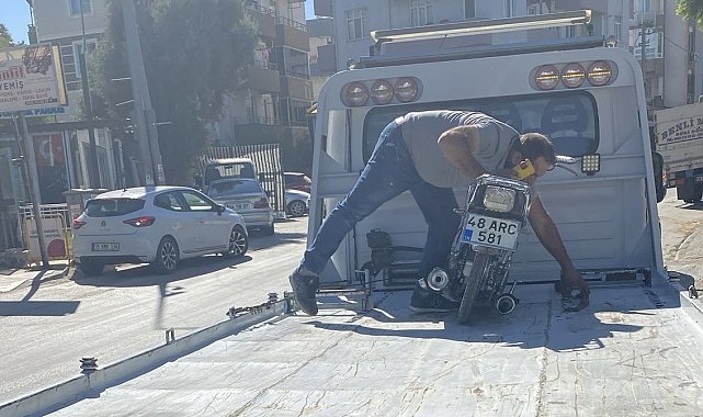 Muğla'nın Milas ilçesinde kask takmadan trafikte ilerleyen ve hız yaparak trafiği tehlikeye düşüren şahsa idari para cezası uygulanırken, motosiklette trafikten men edildi.