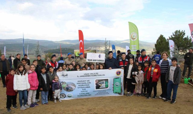 "Geleceğe Nefes, Dünyaya Nefes" sloganıyla her yıl ülke genelinde coşkuyla kutlanan 11 Kasım Millî Ağaçlandırma Günü kapsamında Uşak'ta da geniş katılımlı bir fidan dikim töreni düzenlendi.Uşak'ta 11 Kasım Milli Ağaçlandırma Günü'nde merkeze bağlı Sorkun köyü yakınlarında bulunan ormanlık alanda fidan dikme programı düzenlendi. Programa Vali Naci Aktaş, AK Parti Uşak Milletvekili Fahrettin Tuğrul, Uşak Belediye Başkanı Özkan Yalım, İl Emniyet Müdürü Taner Çiftçi, belediye başkan yardımcıları, kurum müdürleri, vatandaşlar ve öğrenciler katıldı.Ağaçlandırmanın önemine dikkat çeken Vali Aktaş, yaptığı konuşmada; "1 Kasım 2019 tarihinden bu yana Milli Ağaçlandırma Günü olarak etkinlik icra ediyoruz. Sayın Cumhurbaşkanımızın öncülüğünde yürütülen bu faaliyet kapsamında var olan ormanlarımızı korumak, hemşerilerimizde, vatandaşlarımızda çevre bilincini oluşturmak ve memleketimizi yeni ormanlar kazandırmak için etkinlikler, faaliyetler yürütüyoruz." dedi.Orman yangınlarına değinen Vali Aktaş, "Maalesef ki ilimiz son birkaç yıldır orman yangınlarıyla anılır bir il oldu. Bu sene 37 orman yangını ilimizde maalesef gerçekleşti ve 1500 hektarlık bir alanımız zarar gördü. Biz orman teşkilatımızın öncülüğünde hem var olan ormanlarımızı rehabilite etmeye, korumaya, yaşatmaya gayret ediyoruz. Hem yeni orman alanları kazandırmaya çalışıyoruz. Hem de yangından zarar gören ormanları rehabilite ederek fideleme faaliyetlerini yürütüyoruz." ifadelerini kullandı.Vali Aktaş'ın konuşmasının ardından AK Parti Uşak Milletvekili Fahrettin Tuğrul ve Özkan Yalım'da konuşma yaptı.Konuşmaların ardından protokol üyeleri, öğrenciler ve vatandaşlar, fidanları toprakla buluşturarak can suyu verdi.