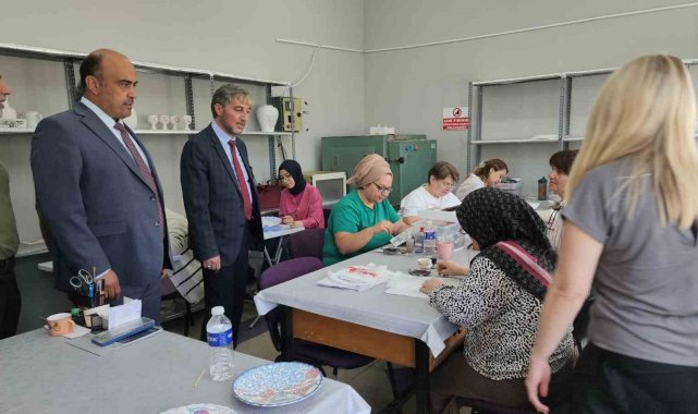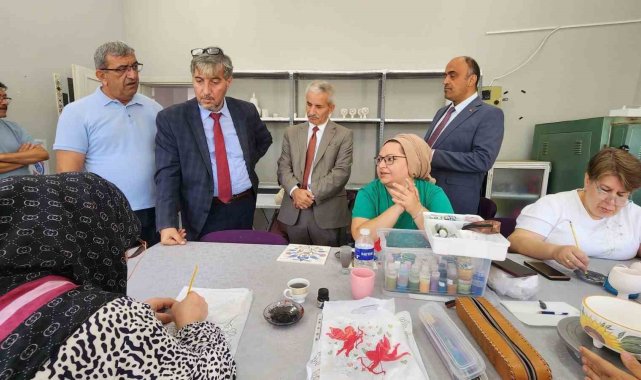 Kütahya İl Millî Eğitim Müdürü Mustafa Yılmaz, Şube Müdürü Hüseyin Hakan Durum ile birlikte Tavşanlı Halk Eğitim Merkezi'ni ziyaret etti. Ziyaret kapsamında yaz dönemi kurs faaliyetleri yerinde incelendi.Ziyarette kursiyerlerle birebir görüşen İl Müdürü Yılmaz, yürütülen eğitim çalışmaları hakkında bilgi aldı. Özellikle Çini Atölyesi ile Yiyecek ve İçecek Hizmetleri alanlarındaki uygulamalı eğitimlerin yoğun ilgi gördüğü gözlemlendi. Kursiyerlerin el emeği ürünleri ve özenle hazırladığı yiyecekler ziyaretçiler tarafından beğeniyle karşılandı.Halk Eğitim Merkezlerinin bireylerin sosyal, kültürel ve mesleki gelişimine önemli katkılar sunduğunu ifade eden İl Millî Eğitim Müdürü Mustafa Yılmaz, kursların açılmasında ve yürütülmesinde emeği geçen herkese teşekkür etti.