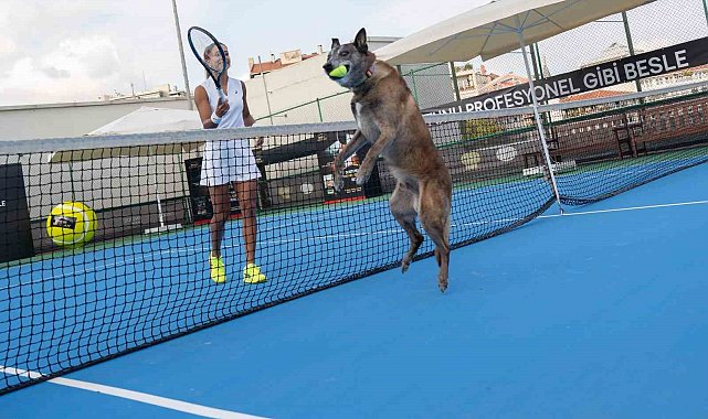Milli Tenisçi Büyükakçay, patili dostu ile tenis oynadı