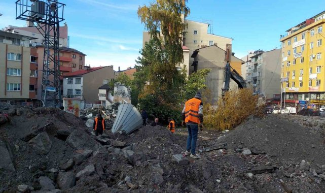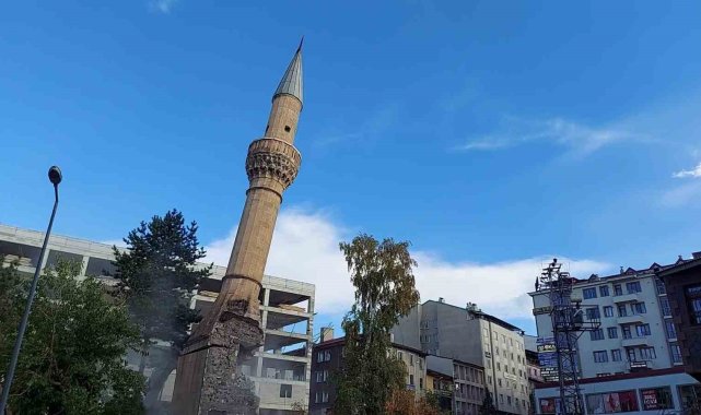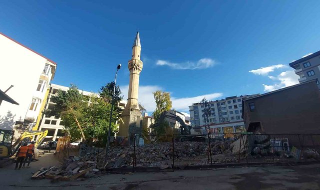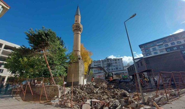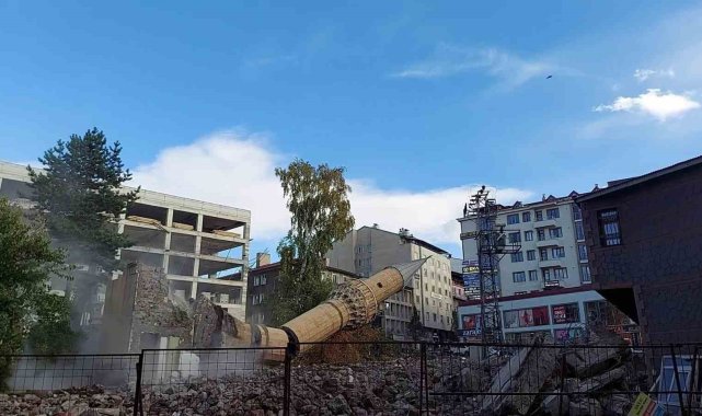 Erzurum'da yerine yenisi yapılacak olan Yukarı Mumcu Cami'nin yıkımında minarenin yere düşüş anları görüntülendi.