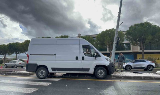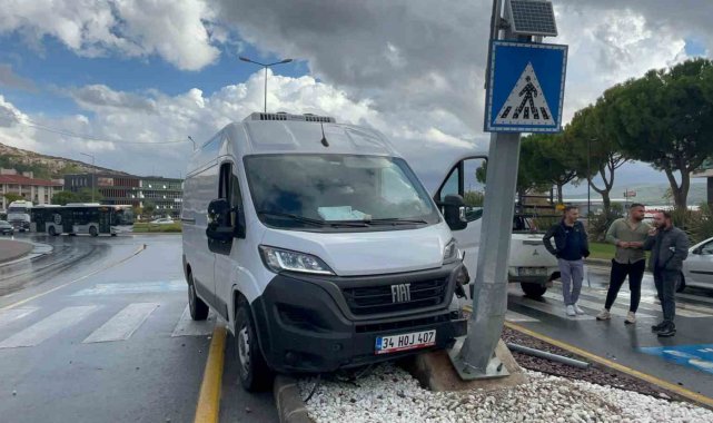 Minibüs direğe çarptı, sürücü yaralandı