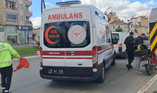Karaman'da minibüs ile çarpışan motosikletin sürücüsü yaralandı.