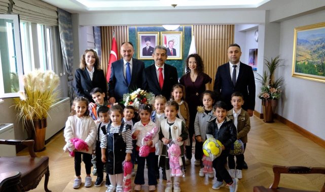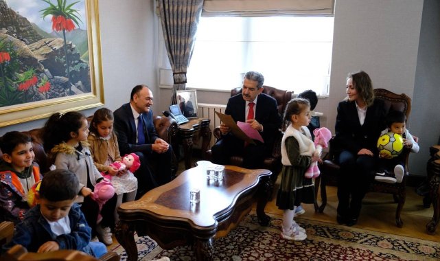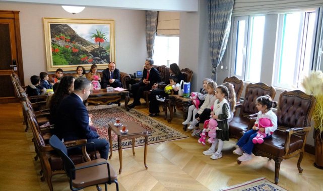 Şırnak Vakıf Anaokulu öğrencileri, İl Milli Eğitim Müdürü Bilal Yılmaz Çandıroğlu ve öğretmenleri eşliğinde Şırnak Valisi Birol Ekici'yi makamında ziyaret etti.