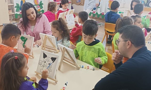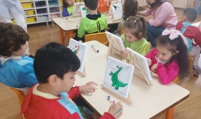 Kütahya'nın Tavşanlı ilçesindeki Hande Gül Anaokulu öğrencileri hayallerini tuvale yansıttı.