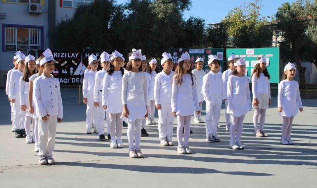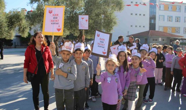 Aydın'ın Efeler ilçesinde minik öğrenciler kan bağışının önemine dikkat çekti.