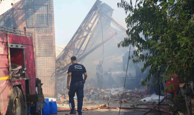 Antalya'da bir mobilya atölyesi çıkan yangına alev alev yandı. Yangına müdahale eden itfaiye ekipleri, arka duvarın çökmesiyle büyük tehlike atlattı. Vatandaşları olay yerinden uzaklaştıran ekipler, çökmenin yaşandığı sırada bölgeden kaçarak kurtuldu. Yangında yaralanan olmazken, atölye kullanılamaz hale geldi.