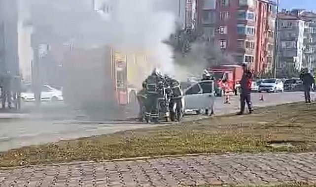 Motor kısmından yangın çıkan otomobilde maddi hasar oluştu