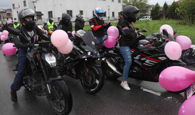 Ekim ayının 'Meme kanseri farkındalık ayı' olması dolayısıyla Sakarya'da düzenlenen etkinlikte kadın ve erkeklerden oluşan motosiklet grupları, şehir turu atarak meme kanserine karşı farkındalık mesajı verdi.