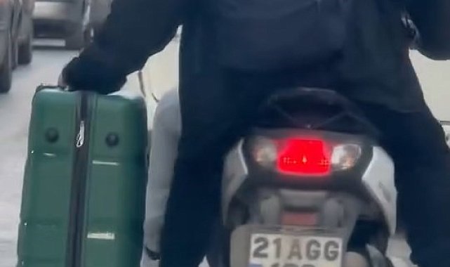 Motosiklet ile valiz taşıma yönetimi görenleri şaşırttı