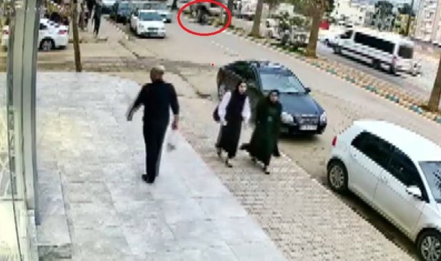 Hatay'ın Reyhanlı ilçesinde karşıya geçmeye çalışan yayaya motosikletin çarpması ve 2 kişinin savrulduğu anlar güvenlik kamerasına yansıdı.