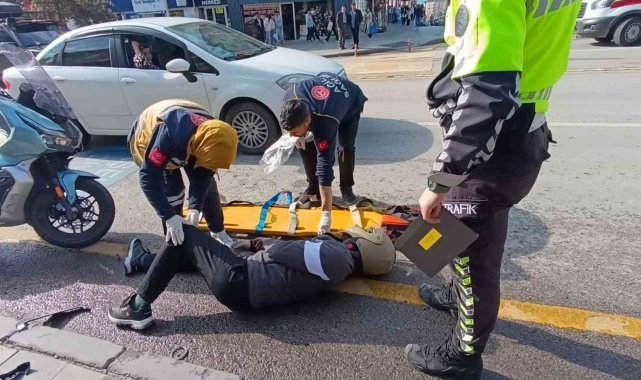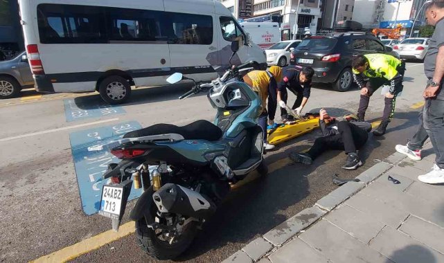 Motosiklet sürücüsü yola savruldu, cep telefonuyla iletişimini kesmedi