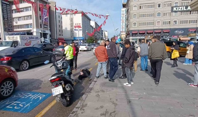 Erzurum'da trafikte seyir halindeki motosiklet önündeki taksiye arkadan vurdu, sürücü yola savruldu. Yaralı sürücünün ambülans gelinceye kadar cep telefonu ile ilgilenmesi ve konuşması dikkat çekti.
