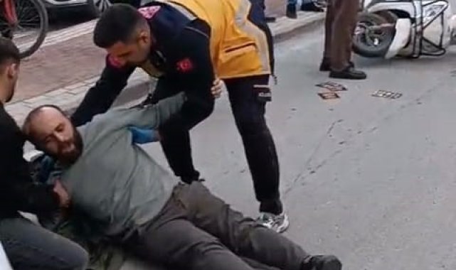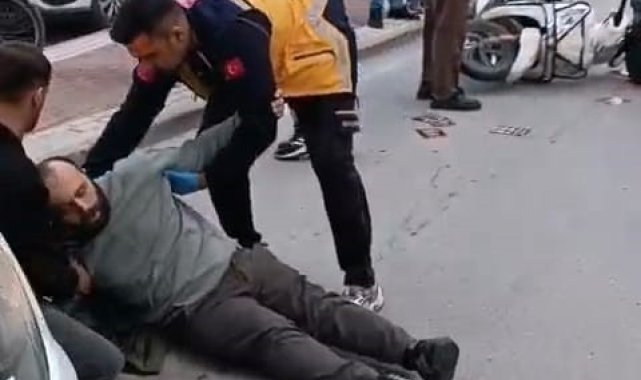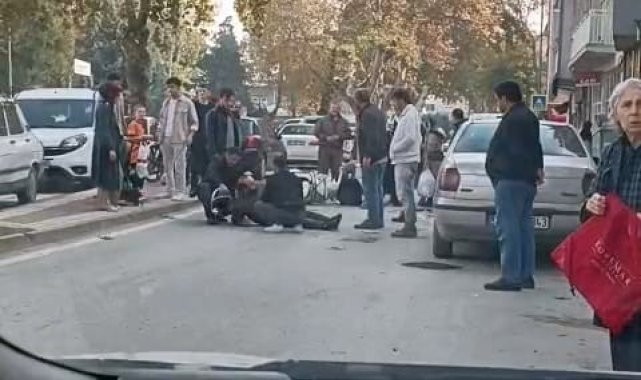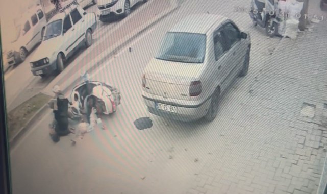 Bursa'nın İnegöl ilçesinde meydana gelen kazada motosiklet yayaya çarptı: 2 kişi yaralandı. Kaza anı bir işyerinin güvenlik kamerasına saniye saniye yansıdı.