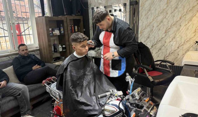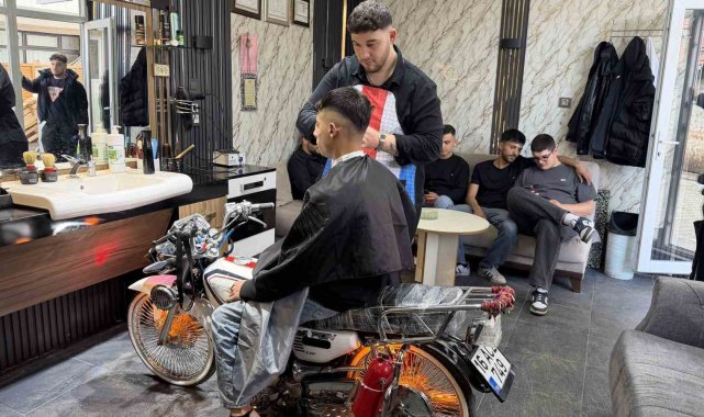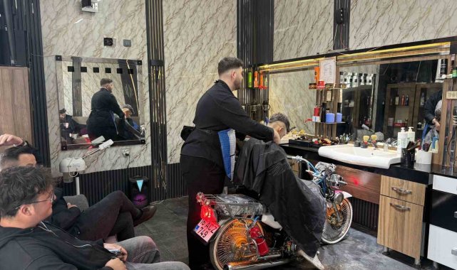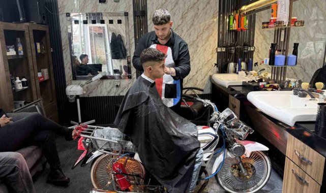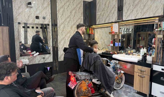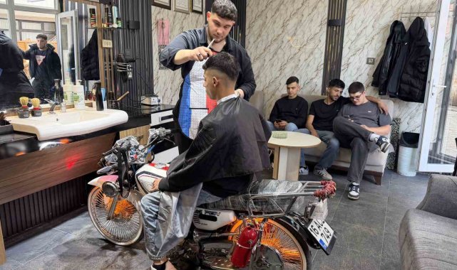 Motosikleti berber koltuğuna dönüştürdü, gençler sıraya girdi