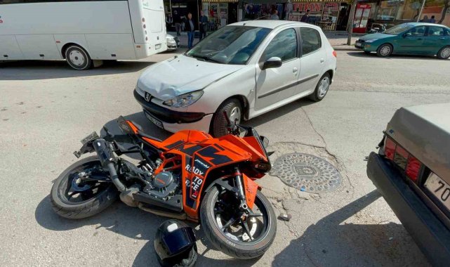 Karaman'da dönüş yapmakta olan otomobille çarpışan motosikletin sürücüsü yaralandı. Kaza anı ise kameraya yansıdı.