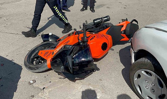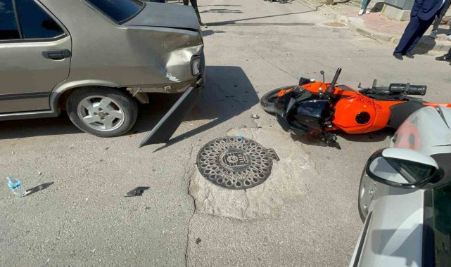 Motosikletin otomobille çarpıştığı kaza kamerada: 1 yaralı