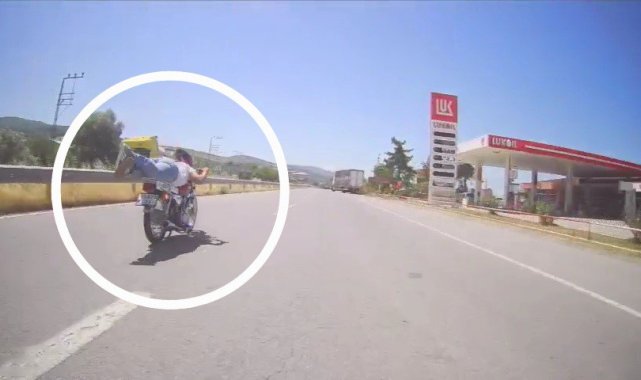 Samsun'un Yakakent ilçesinde motosikletiyle seyir halindeyken tehlikeli hareketler yapan bir sürücü, başka bir aracın kamerasına yakalandı. Görüntüler üzerine harekete geçen polis ekipleri, motosiklet sürücüsüne idari para cezası uyguladı.Olay, Samsun-Sinop karayolu Yakakent ilçesi mevkisinde meydana geldi. Bir motosiklet sürücüsünün seyir halindeyken motosikletin üzerine yatarak ilerlemesi, trafikteki diğer araçların kamerasına yansıdı. Görüntülerin sosyal medyada yayılması sonrası Yakakent İlçe Emniyet Amirliği ekipleri harekete geçti. 55 plakalı motosikletin sürücüsüne, Karayolları Trafik Kanunu'nun ilgili maddeleri kapsamında "trafik güvenliğini tehlikeye düşürdüğü" gerekçesiyle para cezası uygulandı.