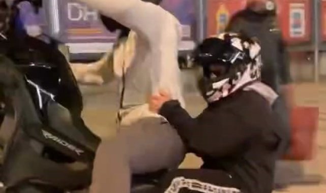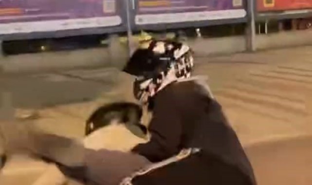 Motosikletiyle ön kaldırdı, kayarak böyle düştü