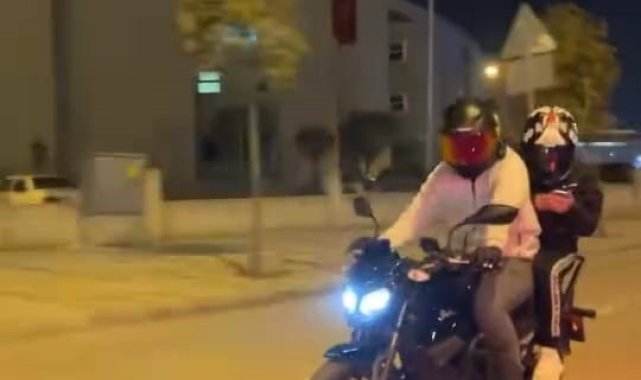 Bursa'nın İnegöl ilçesinde seyir halindeyken motosikletin önünü kaldırmak isteyen sürücü ve arkasındaki yolcu yere düştü. Kaza anı cep telefonu kamerasına saniye saniye yansıdı.Kaza, saat 22.00 sıralarında İnegöl Devlet Hastanesi mevkisinde yaşandı. Seyir halindeyken motosikletinin ön tekerleğini kaldırmaya çalışan sürücü, direksiyon hakimiyetini kaybederek devrildi. Devrilen motosikletten düşen sürücü ve arkasındaki yolcu kazayı ufak sıyrıklarla atlattı.Kaza anı, çevredeki bir sürücünün cep telefonu kamerasına yansıdı. Görüntülerde, motosikletin ön tekerleğini kaldırmaya çalıştığı sırada devrildiği ve iki kişinin yola savrulduğu anlar yer alıyor.