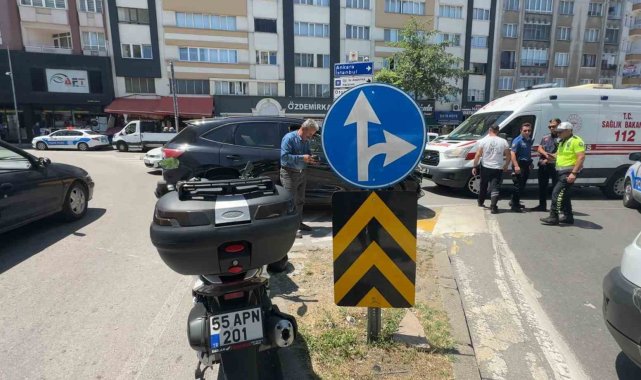 Samsun'un İlkadım ilçesinde kavşakta çarpışan motosiklet ile SUV araçta hasar meydana geldi.