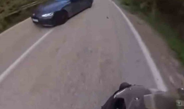 Bursa Gemlik yolu üzerinde seyir halinde olan bir motosikletli, kontrolden çıkarak karşı şeride geçen otomobile çarpmaktan son anda kurtuldu. O anlar motosikletlinin kask kamerasına saniye saniye yansıdı.Edinilen bilgiye göre, Gemlik istikametinde seyreden motosiklet sürücüsü, aniden kontrolden çıkan bir otomobilin karşı yöne savrulduğunu fark etti. Motosikletli refleksle manevra yaparak otomobille çarpışmaktan kıl payı kurtuldu.Korku dolu anlar, sürücünün kask kamerası tarafından anbean kaydedildi.