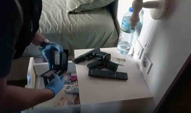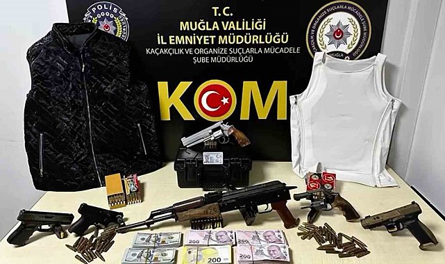 Muğla'nın Ula ilçesinde Düzce ilinde tasarlayarak öldürme ve hükümlü veya tutuklunun kaçması suçundan 31 yıl 1 ay kesinleşmiş hapis cezası bulunan şahıs Özel Hareket ekipleri ve Drone destekli operasyonda yakalandı.Muğla Emniyet Müdürlüğü Kaçakçılık ve Organize Suçlarla Mücadele Şube Müdürlüğü ile İstihbarat Şube Müdürlüklerimizce aranan şahısların yakalanmasına yönelik yapılan müşterek çalışmada, Düzce İlamat Bürosunca 'Tasarlayarak Öldürme' ve 'Hükümlü veya Tutuklunun Kaçması' suçundan hakkında 33 yıl 1 ay kesinleşmiş hapis cezası ile aranma kaydı bulunan şüpheli bir şahıs Ula ilçesinde saklandığı villada Özel Harekat Şube Müdürlüğü ekipleri ile birlikte gerçekleştirilen operasyonda yakalandı.Düzenlenen operasyonda evde yapılan aramalarda; AK-47 Kalaşnikof, 2 adet ruhsatsız tabanca, ruhsatsız toplu tabanca, Glock marka ruhsatsız suikast tabancası, 287 adet değişik milimetrelerde fişek, 2 adet balistik yelek, 6 adet tabancalara ait şarjör, 5 bin 870 Euro, 19 bin 300 Dolar, 71 bin 605 TL nakit para ve sahte nüfus cüzdanı ele geçirildi.Aranan şahıs ile birlikte olduğu tespit edilen iki şüpheli şahıs ateşli silahlar kanununa muhalefet, resmi belgede sahtecilik suçundan gözaltına alındı. 3 şüpheli şahıs adli makamlarca tutuklanarak cezaevine gönderildi.