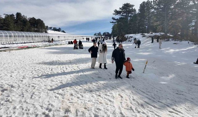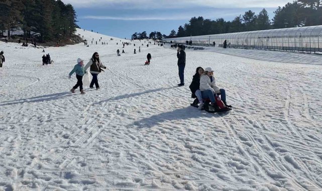 Kütahya'nın Gediz ilçesinde bulunan Murat Dağı Termal Kayak Merkezi, sömestr tatilinin son gününde kayak ve kış turizmi tutkunlarını ağırladı.Bu sene yağışların yetersiz olması nedeniyle kayak pistleri açılamazken, tesis yetkilileri kızak pistiyle hizmet vermeye devam etti. Tatilin son gününü değerlendirmek isteyen aileler, kızakla kayarak ve kartopu oynayarak keyifli anlar yaşadı. Tesis Müdürü Ali Ünal, "Bu yıl yeterli kar yağışı alamadığımız için kayak pistimizi açamadık, ancak kızak pistimiz yoğun ilgi görüyor. Vatandaşlarımızın en iyi şekilde hizmet alabilmesi için çalışmalarımızı sürdürüyoruz" dedi.Sömestr tatili boyunca Murat Dağı'ndaki konaklama tesislerinde doluluk oranının yüzde 100'e ulaştığını belirten yetkililer, bölgeye olan ilginin her geçen yıl arttığını ifade etti. Hem termal turizm hem de kış sporlarının bir arada yapılabildiği Murat Dağı, ziyaretçilerine eşsiz bir deneyim sunmaya devam ediyor.Eğlenceli anlar yaşayan vatandaşların güvenliği için UMKE ve Jandarma ekipleri de bölgede hazır bekledi. Kaza ihtimaline karşı önlem alan ekipler, ziyaretçilerin güvenli bir şekilde vakit geçirmesini sağladı.Gediz'de okul öncesi öğretmeni olarak görev yapan Dilek İnan, "Bir dönemi geride bıraktık, tatilin son gününde ailemizle buraya geldik. Bizlere bu imkânı sağlayan Murat Dağı çalışanlarına teşekkür ederiz" diye konuştu. Ailecek kış turizmini sevdiklerini belirten Ramazan İnan ise "Çocuklarımızla çok keyifli bir gün geçiriyoruz. Bizlere bu fırsatı sağlayan Gediz Belediyesi'ne teşekkür ederiz" dedi.Son yıllarda gelişen altyapısı ve artan ilgisiyle Murat Dağı, hem yerel hem de ulusal çapta bir turizm merkezi olma yolunda ilerliyor. Bölgenin daha fazla tanıtılması ve altyapı çalışmalarının sürdürülmesiyle, gelecekte daha geniş kitlelere hitap edeceği öngörülüyor. Kar kalınlığının istenilen seviyeye ulaşmasıyla kayak pistlerinin de açılması bekleniyor.