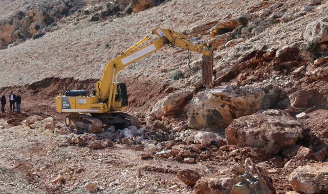 Müren yayla yolunda dev kayalar parçalanarak yol genişletiliyor