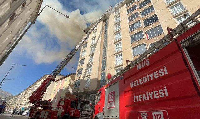 Muş'ta 9 katlı binanın çatısında çıkan yangın, ekiplerin hızlı müdahalesi ile söndürüldü.