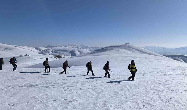 Muş'ta doğa tutkunları ve profesyonel dağcılardan oluşan Gerok Grubu, zorlu hava şartlarına rağmen 2 bin 600 rakımlı Çavuştepe zirvesine başarılı bir tırmanış gerçekleştirdi.Muş'ta sabahın erken saatlerinde başlayan tırmanış, yaklaşık 4 saat sürdü. Ekip, karın etkili olduğu parkuru aşarak öğle saatlerinde zirveye ulaştı. Başarıyla tamamlanan tırmanışta doğaseverler, Muş'un eşsiz manzarası eşliğinde zirve yapmanın mutluluğunu yaşadı.Doğa sporlarına olan ilgiyi artırmayı ve bölgenin doğal güzelliklerini tanıtmayı amaçlayan Gerok Grubu üyeleri, tüm doğaseverleri bu tür etkinliklere katılmaya davet etti. Doğa yürüyüşüne katılan Profesyonel Tur Rehberi Rumeysa Bingöl, şehrin uzak kalmış güzelliklerini tanıtmak için çeşitli geziler düzenlediklerini belirterek, "Bugün burada profesyonellerle birlikte bir dağ yürüyüşü yaptık. Anlık olarak 2 bin 600 rakımdayız ve Kurtik Dağı zirvesine kadar ulaştık. İnanılmaz güzel, seyir zevki sunan manzaralar eşliğinde güzel bir yürüyüş yaptık. Her hafta sonu farklı farklı rotalarda yürüyüşler düzenliyoruz. Hem kendimiz mutlu olmak için hem de gerçekten şehrimizin uzakta kalmış güzelliklerini keşfedebilmek için çok güzel yürüyüşler yapıyoruz. Herkesi bu yürüyüşe bekleriz" dedi.Düzenli olarak doğa yürüyüşlerine katıldığını söyleyen Doktor Seliman Çetinbulut ise "Her hafta pazar günleri stresimizi ve enerjimiz dağlarda atıyoruz. Hayat doğada güzel. Bütün şehirdeki arkadaşlarımıza, buraları anlatıyoruz. Herkesi bekleriz buraya. Dağların zirvesindeyiz. Burada gördüklerimiz anlatılmaz yaşanır. Bu kadar zirveye çıkıp geri dönüp baktığımızda, hissettiklerimiz tarif edilemez. Hayat doğada güzel. Herkesi bekleriz buraya" ifadelerini kullandı.Türkiye Dağcılık Federasyonu Antrenörü Melek Karataş da, doğanın korunmasına değinerek, "Cumartesi ve pazar günleri burada etkinliklere katılıyoruz. Farklı rotalardan yürüyüşler yapıyoruz. Farklı insanlarla bir araya gelerek sosyalleşmek açısından gayet güzel bir etkinlik oluyor. Doğaseverleri bekliyoruz. Doğa yürüyüşleri hem psikolojik, hem sosyal olarak insan ve toplamda fayda sağlayan bir etkinlik oluyor. Cumartesi ve pazar günleri yaptığımız rotalarda herkese göre bir zorluk oluyor. Özellikle şu konuya açıklık getirmek istiyorum. Gelen doğaseverlerimizle birlikte özellikle doğa ekibinde bu konuda çok dikkat etmemiz gerekiyor. Gelen insanlardan tek dileğimiz doğaya biraz daha önem vermek. Doğa bizi bağrına basıyorsa bize buna biraz saygı göstermek zorundayız. Buna özellikle dikkat etmemiz gerekiyor" şeklinde konuştu.Doğa yürüyüşlerin kendilerine iyi geldiğinin altını çizen doğaseverlerden Fatih Yüce ise güzel havanın keyfine vardıklarını belirterek, "Bugün arkadaşlarımızla birlikte bir doğa yürüyüşü düzenledik. Çok güzel bir rotamız vardı. Güneşte yürüyüşümüzü gerçekleştirdik" dedi.