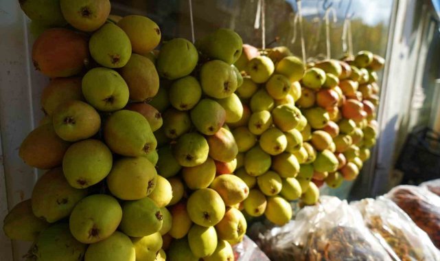 Muş'ta ipe dizilen güz armutları 3 ay tazeliğini koruyor
