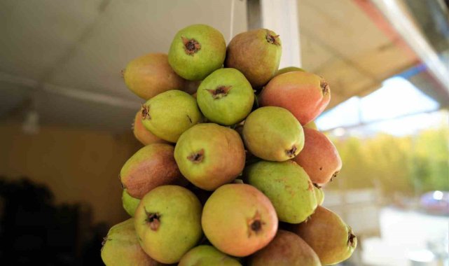 Muş'ta yaşayan 65 yaşındaki 7 çocuk babası İlhan Demirel'in ipe dizdiği güz armutları, yaklaşık üç ay tazeliğini koruyor ve kilosu 100 TL'den alıcı buluyor.