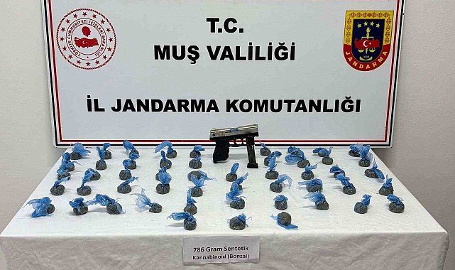 Muş'ta jandarma ekiplerince gerçekleştirilen uyuşturucu operasyonunda 1 kişi gözaltına alındı.Valilikten yapılan açıklamada, Muş İl Jandarma Komutanlığı unsurlarınca yapılan araştırmada Y.E.Ş. isimli şahsın uyuşturucu madde satışı yaptığı ve bu uyuşturucu maddeleri il merkezinde bulunan iş yerinde sakladığı bilgisi elde edildiği belirtildi. Açıklamada, "Elde edilen bilgiler ışığında Muş Cumhuriyet Başsavcılığından alınan arama kararına istinaden icra edilen arama faaliyetinde; Y.E.Ş. isimli şahsın üzerinde satışa hazır halde 7 parça, iş yerinde 44 parça olmak üzere toplam ağırlığı 786 gram gelen 51 parça sentetik kannobinoid (Bonzai), 1 adet ruhsatsız tabanca ve bu tabancaya ait 1 adet şarjör ele geçirilmiştir. Muş Cumhuriyet Savcısının talimatı doğrultusunda şüpheli Y.E.Ş. isimli şahıs gözaltına alınmış, ele geçirilen uyuşturucu maddelere ve tabancaya el konulmuştur" denildi.