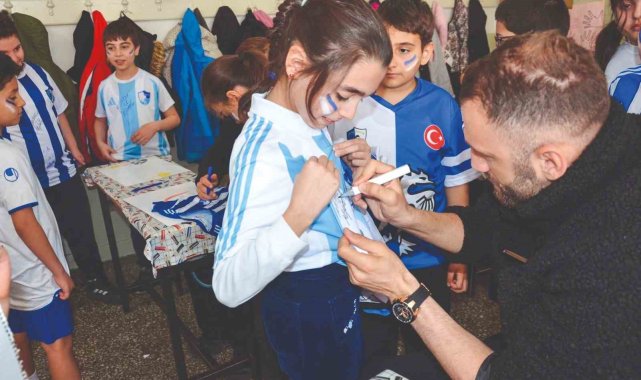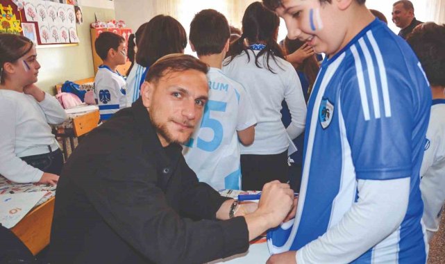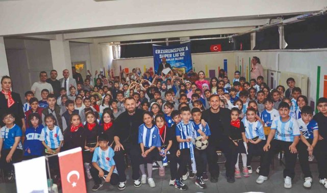 Erzurumspor'un başarılı futbolcuları Kaptanı Mustafa Yumlu ve Sefa Akgün, Evliya Çelebi İlköğretim Okulu'nu ziyaret ederek çocukları sevince boğdu. Ziyaretten habersiz olan öğrenciler futbolcuları, "Şaka mı bu yoksa rüya mı?" çığlıklarıyla karşıladı.